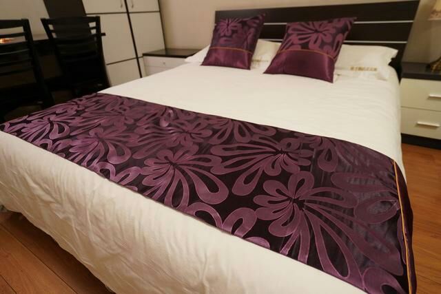 要说这块床尾巾的作用,大多数都会以为是装饰的,确实,它是有这样的作用,酒店的床一般都是白色的,床尾巾则一般都是深色的,和床品的颜色相差很远,这种差异性也形成了独特的装饰效果,也能让酒店住的客人产生一种舒适感。放一个比较有设计感的床旗,整个床铺会显得更加美观。
