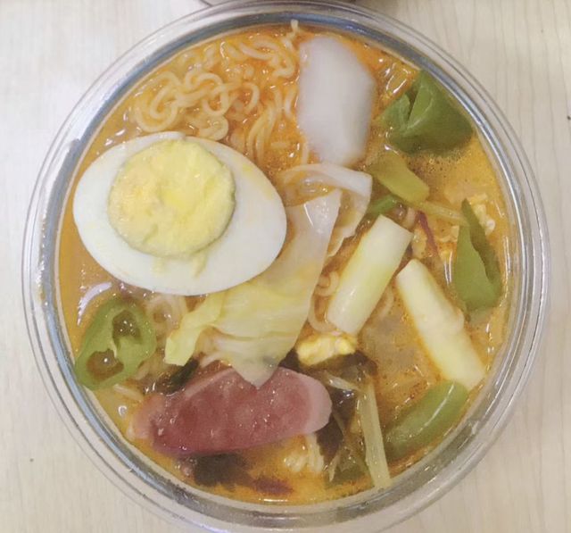 与普通的煮泡面差不多,只是她加入了青椒,白菜,火腿和笋进行配色,鸡蛋没有做荷包蛋,而做了水煮蛋然后让郭麒麟帮忙剥皮切开了,整体弄好之后,看着卖相都还不错。