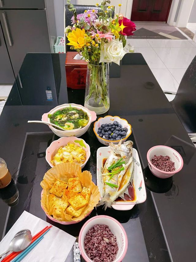 一个小时后,方媛摆盘结束,总算是准备就绪了,做了一个清蒸鱼,香煎豆腐,酷溜白菜,然后做了一个虾仁裙带菜汤,蒸的糙米饭,又洗了一些蓝莓,毕竟她是长期用眼,而张云雷也是视力本身就不好,多吃蓝莓也是对眼睛好。
