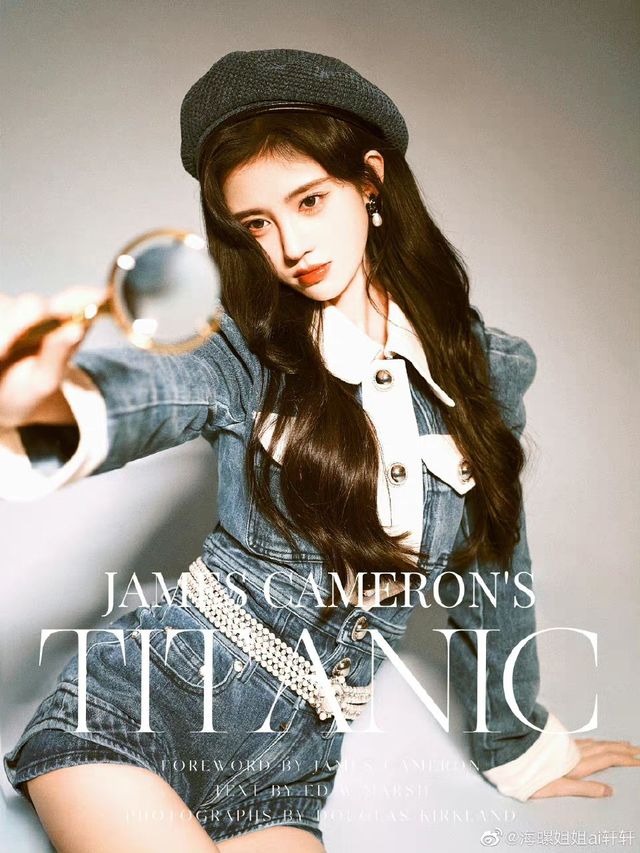 身着一身娃娃领的针织毛衣外与牛仔套装紧密贴合,将身体曲线展现的很是完美