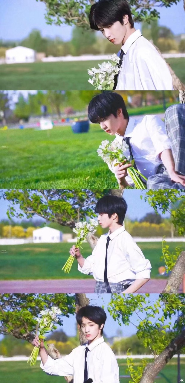 刘耀文看着这有一束花,举了起来,像拍照一样手机对准自己,用的确实后置摄像头