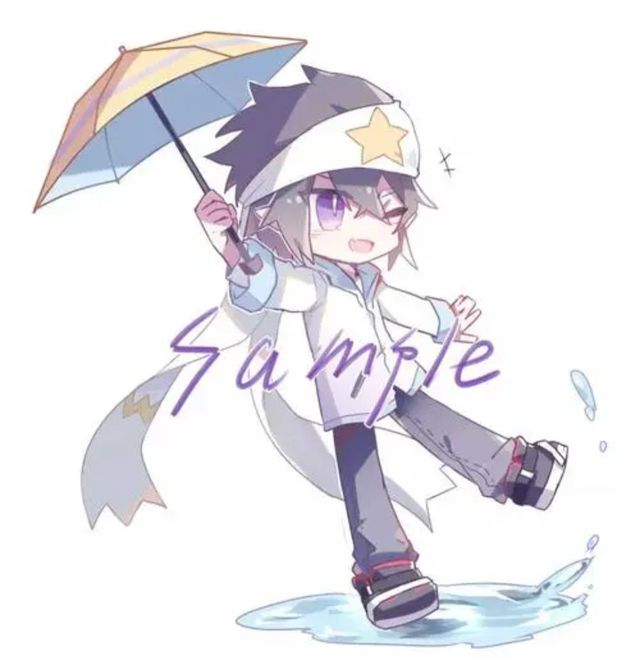 前面站着两个男孩 ,高的那个有着暗紫色的头发和亮紫的眼眸,矮一点的戴着红围巾和帽子,蓝色的眼睛一闪一闪的。