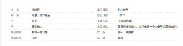 曾任江州祭酒、建威参军、镇军参军、彭泽县令等职,最末一次出仕为彭泽县令,八十多天便弃职而去,从此归隐田园。他是中国第一位田园诗人,被称为“古今隐逸诗人之宗 ”,有《陶渊明集》。