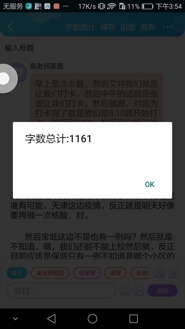 高老师英语早上是涂志鑫,然后艾特我们就是让我们打卡,然后中午的话就是张恒让我们打卡,然后就嗯,对因为打卡完了就是我们是8:10就开始打卡,然后到8:20,然后我们就开始上课,然后等那个的话下午的话就是1:40打卡,现在改成1:20唉,是1:20吗?反正就是下午要打卡就对了。