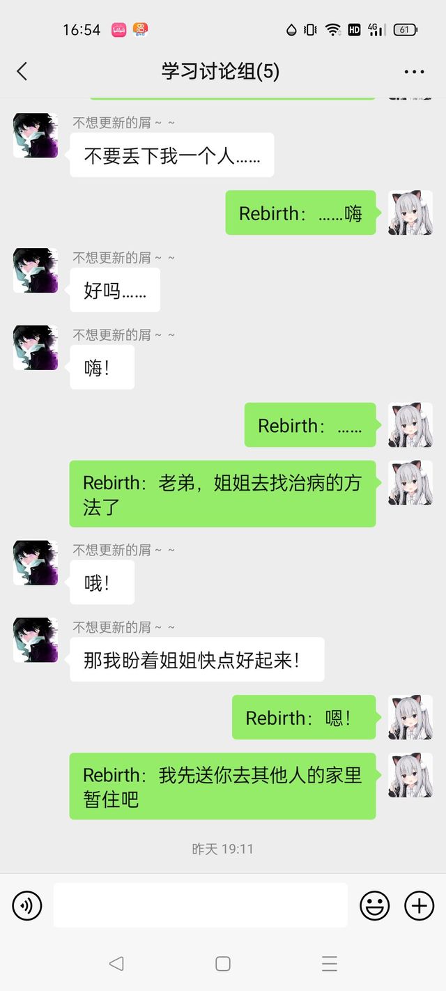 (这是在vx群发生的事情,leak失忆了,作者tinacat忽悠他她是他姐姐,Rebirth是他哥)