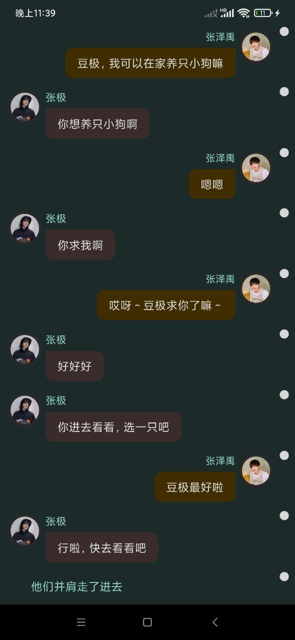 张泽禹哎张极你说这两只狗狗叫什么名字呀