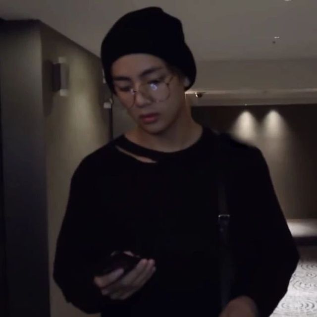 突然金泰亨拽下了挡在镜头前的毛巾,穿着一件随意的黑色T恤,金色眼镜挂在脸上,他低头看着手机,然后抬头挪了挪镜头。