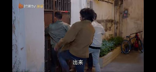 四个人围着这个门拳打脚踢,还喊着话“出来!”