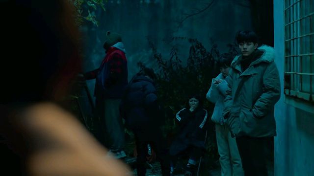 崔南拉温柔地揉了揉南温召的脑袋,然后转身拉起了衣服,从顶楼翻了下去