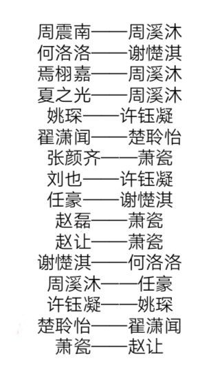 谢憷淇,许钰凝,周溪沐,楚聆怡,萧瓷,姚琛,夏之光,赵磊,翟潇闻,何洛洛,刘也,任豪,焉栩嘉,周震南,张颜齐,赵让。
