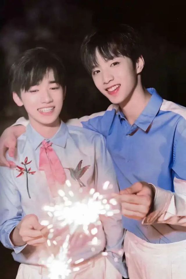 心形的小烟花在两位少年的手中被点亮