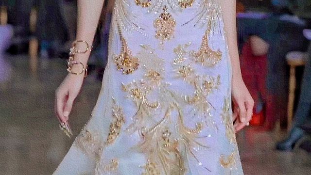 沈佳佳不再是白天的装扮,她换上了一条华丽的晚礼服,璀璨夺目的金丝镶嵌在裙间,更特别的是她戴上甲套,用另一只手缓缓拉开黑色的袋子,男人的样貌展露在二人眼前。