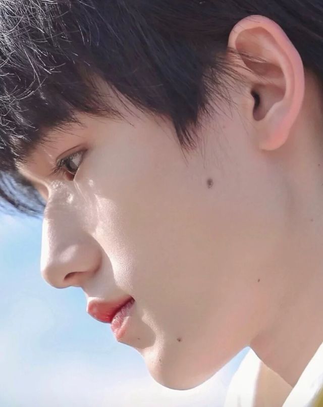 秋风吹过少年的头发,若隐若现的下垂眉,高挺的鼻梁,薄薄的嘴唇,无可挑剔的面部轮廓,让人心动。
