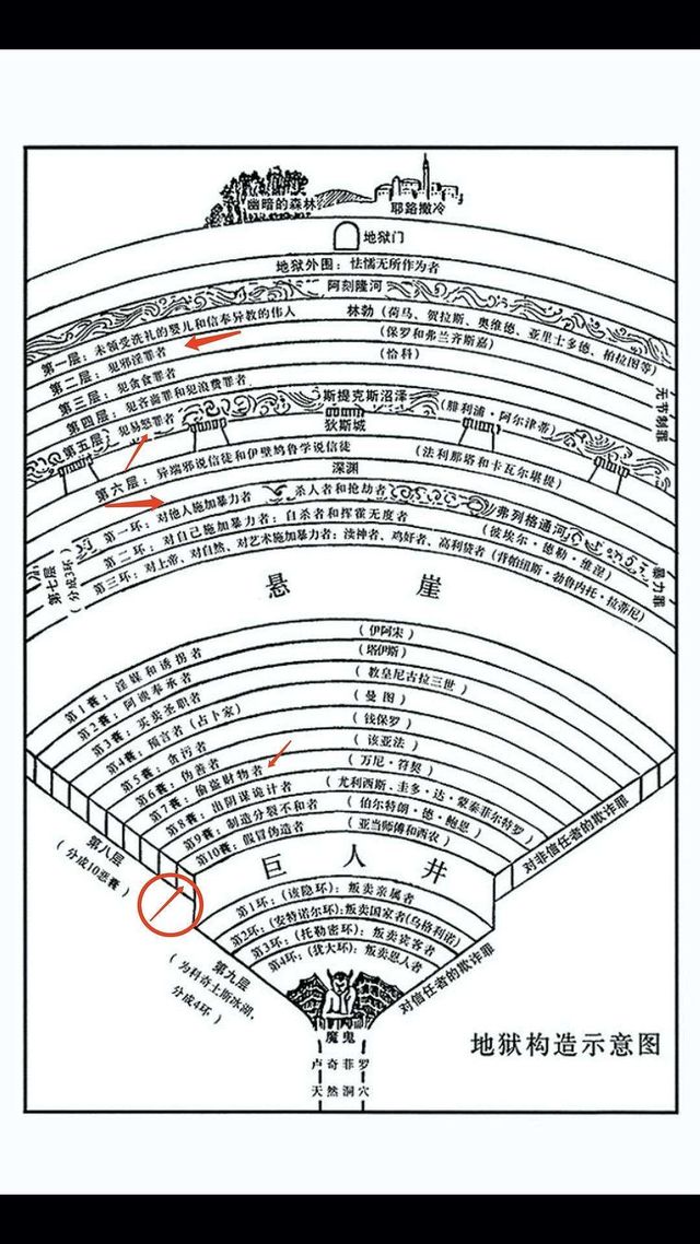 出门便看见门旁牌子上的地狱图,就像一栋硕大的楼房一样