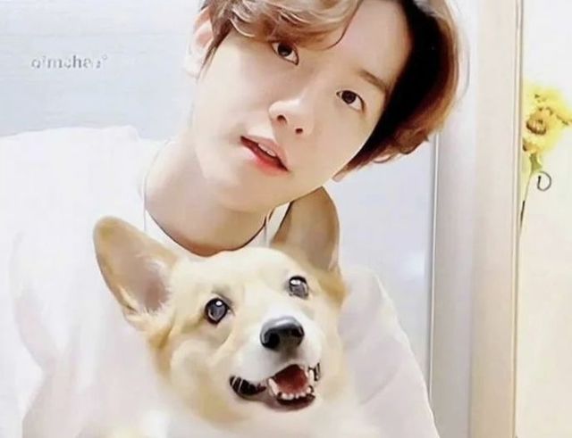边伯贤把梦龙抱在怀里,拉着它的手向你挥着…