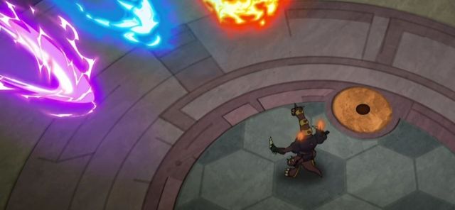龙火烈焰吞噬掉炎沙龙的攻击,将炎沙龙击败在地