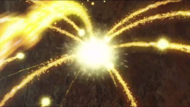 双臂向左右展开,拉出一条耀金色的光线,金色的能量与黑色的能量从四面八方向着胸口菱形的彩色计时器汇聚,胸部护甲以及四肢的护甲共鸣般地亮起彩色光芒!
