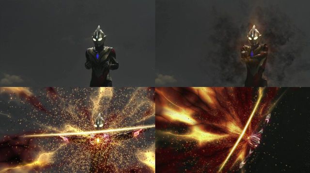 特利迦再次抬起双臂在前方交叉后,身体闪耀着金光!