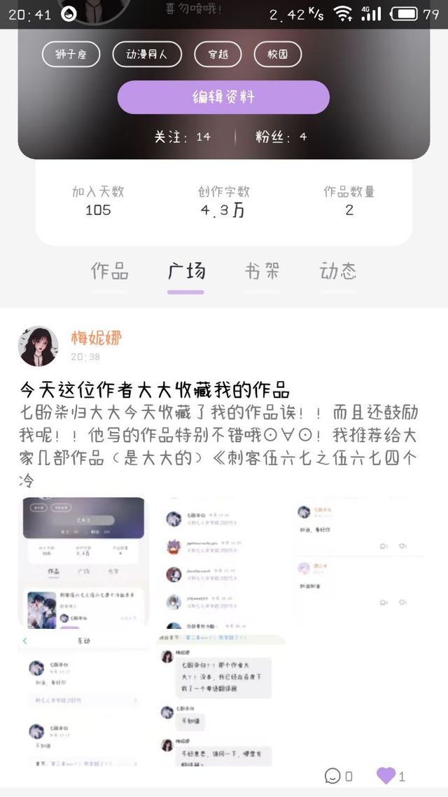 梅妮娜(作者)七盼柒归大大今天收藏了我的作品诶!!而且还鼓励我呢!!他写的作品特别不错哦⊙∀⊙!我推荐给大家几部作品(是大大的)《刺客伍六七之伍六七四个冷血杀手》、《刺客伍六七之狼柒兔七》、《鬼娃——四屠玄武》,这些都是写伍六七的作品哦!总之特别开心^_^