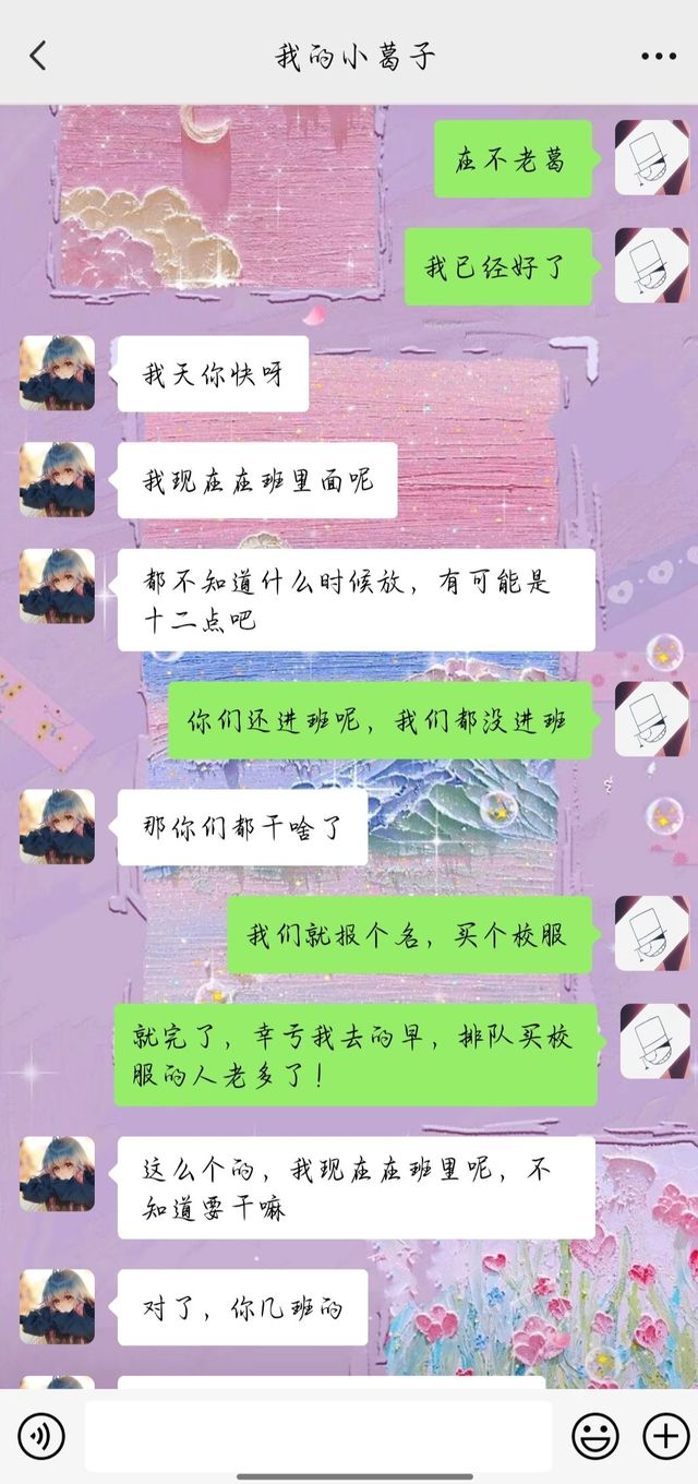 我来到了高一二班所在的教学楼,看到了几个二班的学生正在排队,便走到了队伍最后面看起了老哥给我发的照片。