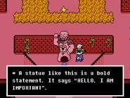papyrus王子设置了一个与假人相遇的教程,教主角战斗的基础知识。纸莎草王子在遭遇后的评论和疯狂假人的对话因主角对假人所做的事情而有所不同。