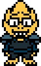 Alphys 是一个身材矮小的黄色爬虫类怪物,穿着自制的叛军制服和眼镜。
