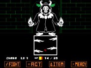 这个故事的主要反派。他完全记得经典的事件,包括Frisk 在中立和和平主义道路上的行动,直到他暂时获胜。但是,除了觉醒后的经历之外,他对当前的时间线一无所知。试图成为 Frisk 的朋友以推进他的隐藏计划。尽管缺乏经验,但他精通这个新地下城的组织,并告知他保存和加载、屏障和战争的可能性。起初,他还以为Frisk是他的老朋友,但他从不直接称他为“Chara”,大多称他们为“孩子”。他将 Papyrus 纳入他的计划中,但对其他人隐藏,尤其是对 Sans。他想再次捕捉灵魂,但他的目标已经改变。他的目标比以前更高。