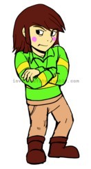 Frisk 的衣服在整个故事中不断变化。在冒险过程中与 Papyrus 非常亲近,在此期间将他视为自己最好的朋友。他经常与 Chara 交谈,称他为“Captain Riddle”(英语船长 Cruptic)。出于自私的原因逃跑并来到埃博特山。这些原因将在后面揭晓。