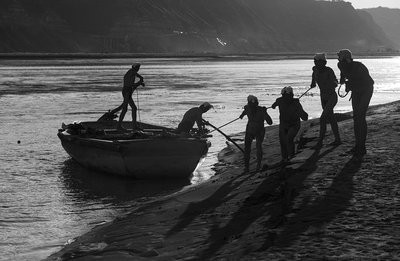 兔子哥哥,这是一帮子人在拉船。