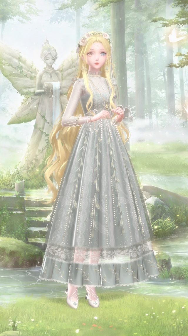 说话的是一位蓝发少女,身穿一件白绿相间的连衣裙,整个人身上都有一种温柔的气质,看起来温婉如月