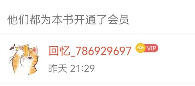 一大早就看到(名为:回忆_786929697)的读者大大为本书开的会员,真的实在是太开心了!