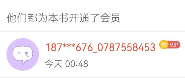 一大早就看到(名为:187***676_0787558453)的读者大大为本书开的会员,真是特别特别的开心呢!