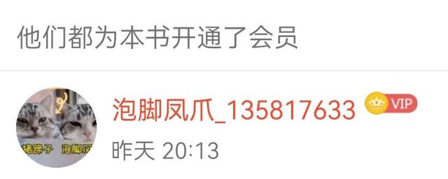 一上来就看到(名为:泡脚凤爪_135817633)的读者大大为本书开的会员,真是特别的开心呢!