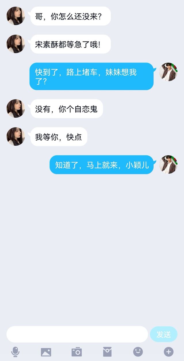 顾柒颖看到了丁程鑫对她的回复,心情瞬间舒畅了,她哥哥和她在一起了这么多年,总是很了解她都小心思和想法,这让她总是很快乐,甚至连说话都温柔了许多