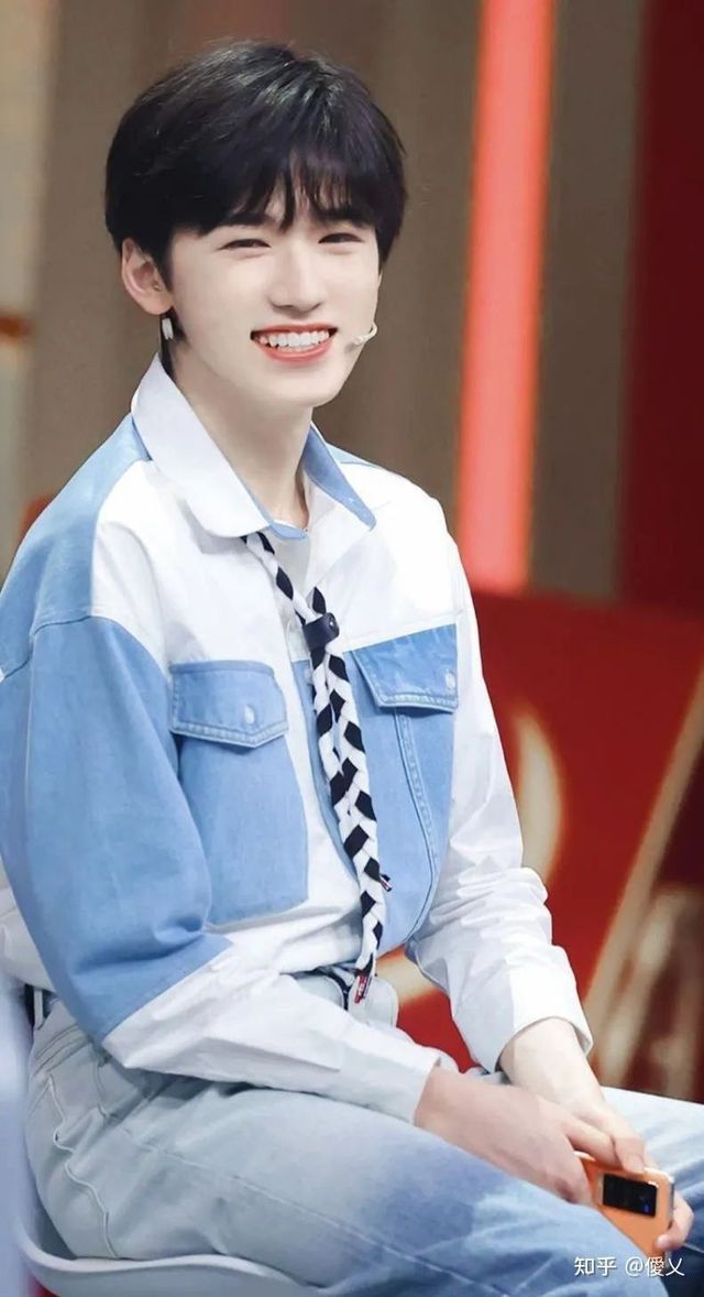白蓝色的牛仔褂,黑白相间的领带,再加上一丝甜美的笑,干净整洁,满满的少年感,甜到了人的心坎里,让人不得不喜欢宋亚轩啊