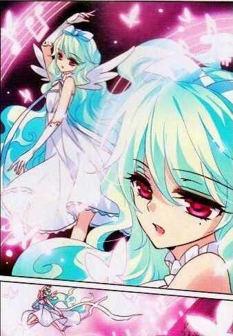 拥有的蓝绿色头发,红色瞳孔的美丽少女跟随音乐的律动,翩翩起舞。樱花的映衬显得她更加美丽动人。