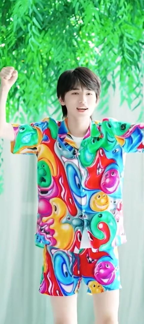 刘耀文和刘耀武的只有泳裤,他给宋亚轩挑的是一整套泳衣,颜色多姿多彩,多种图案表情融合在一起,说好看吧也不是,说不好看吧...还真...