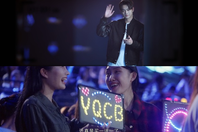 M神的粉丝们也应景地高高举起了自己家偶像的灯牌。