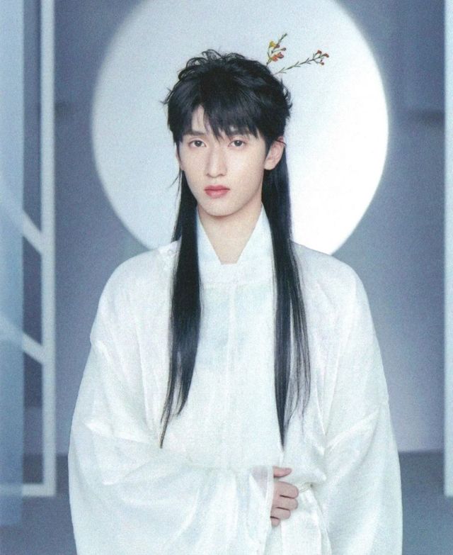 白衣黑发 衣和发都飘逸着 不扎不束 微微飘拂