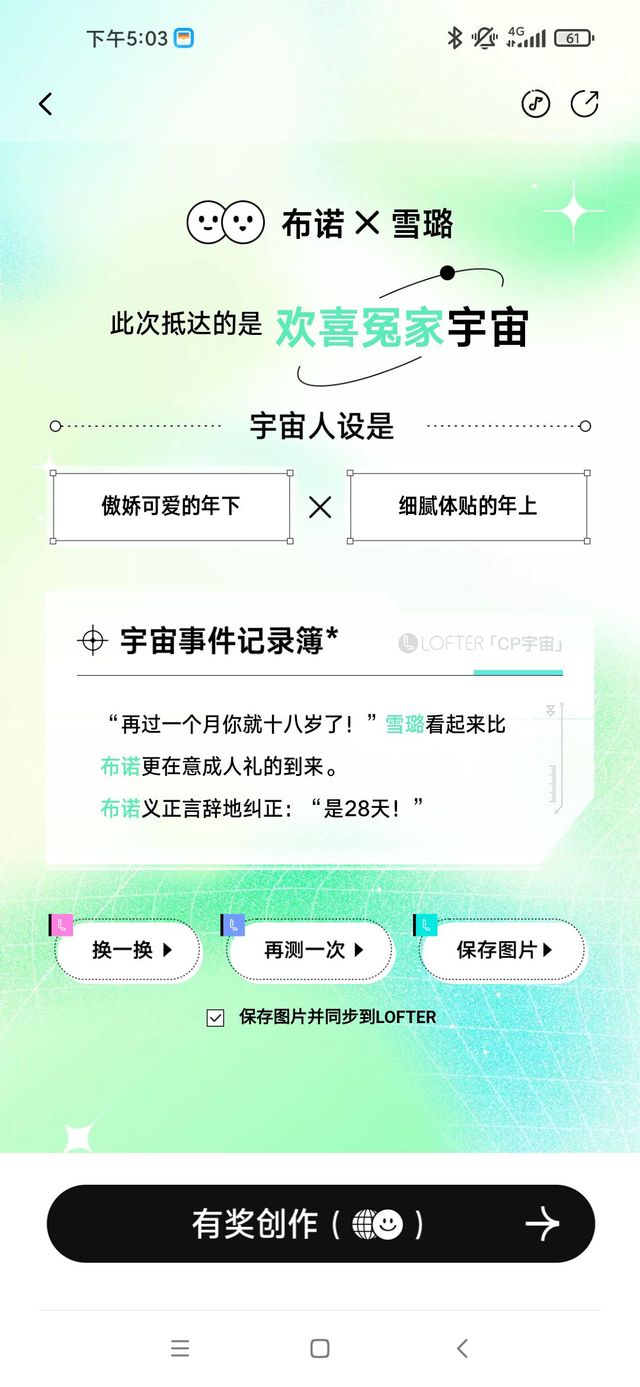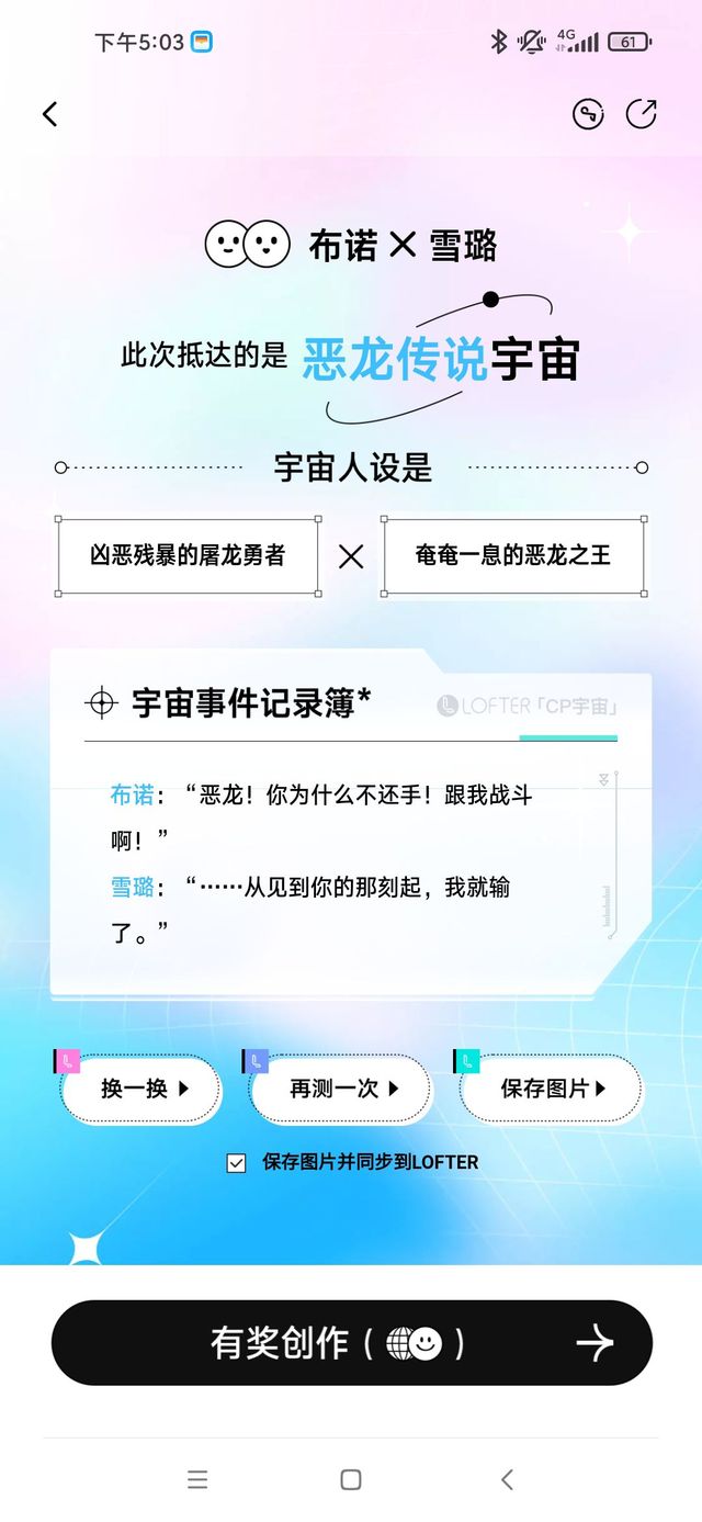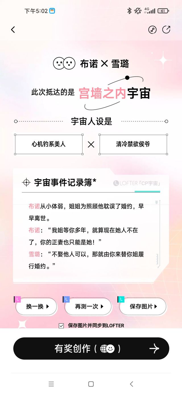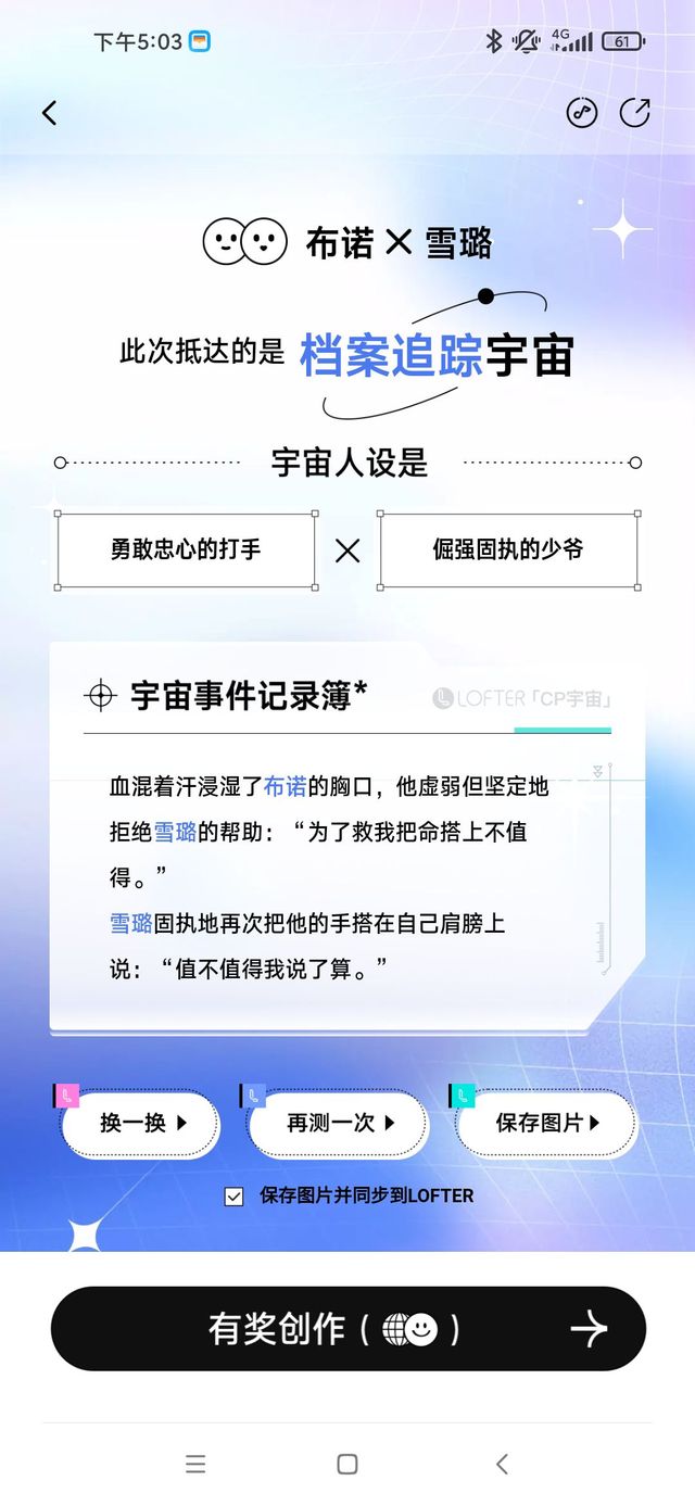 作者今天玩lofter的cp生成,用的布诺和雪璐