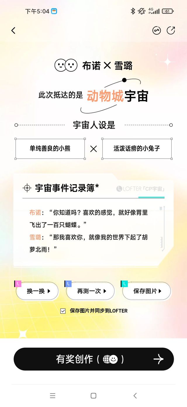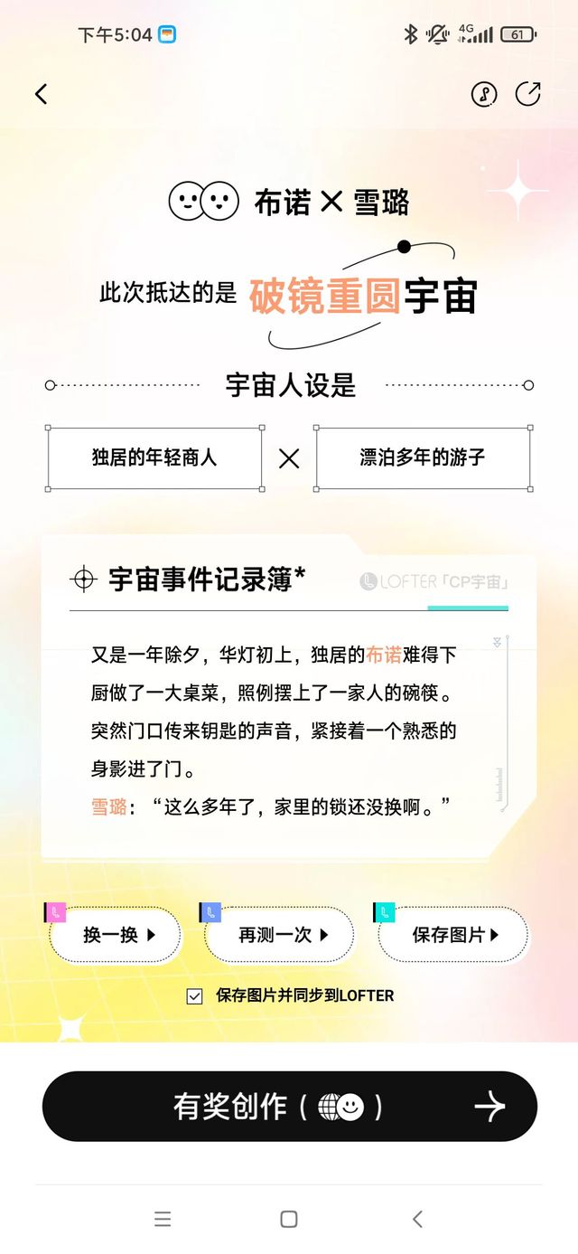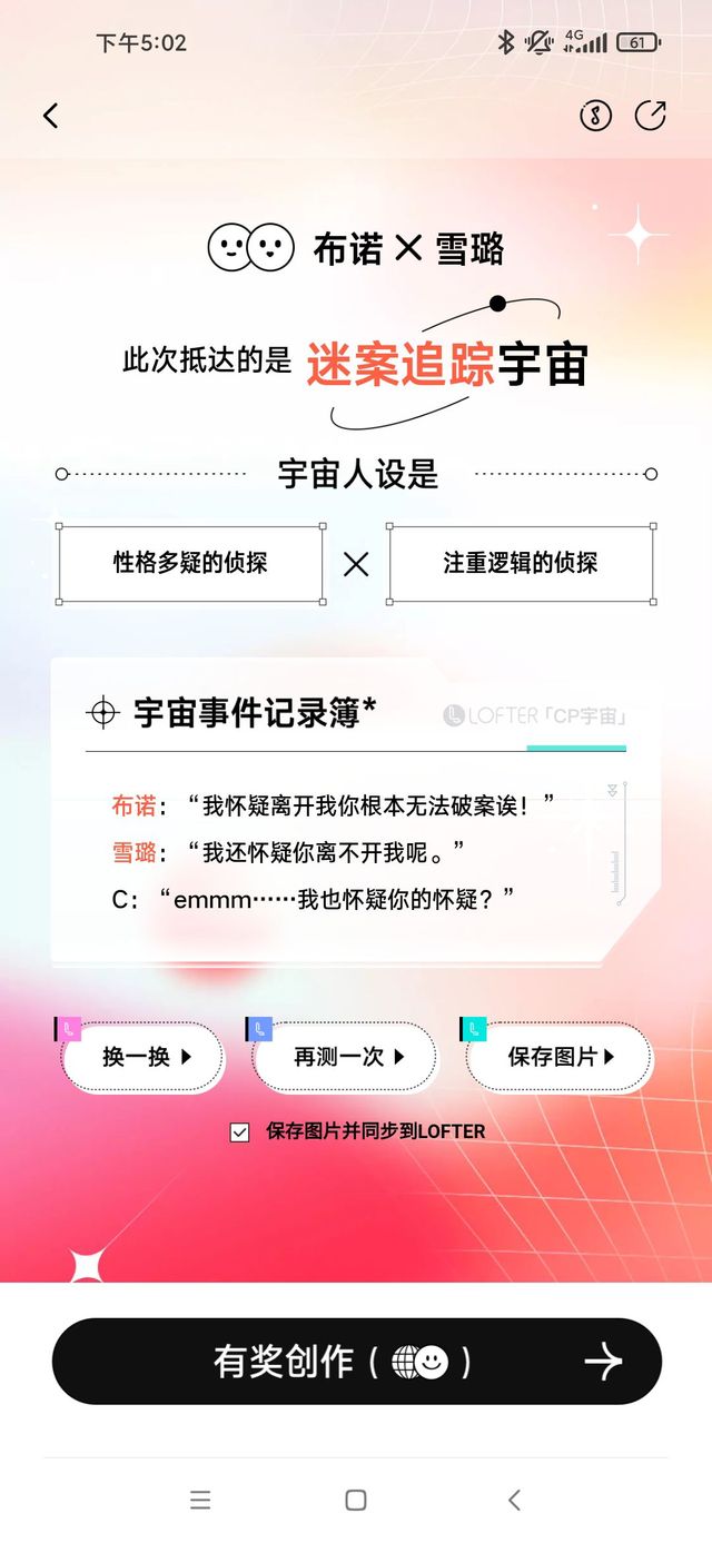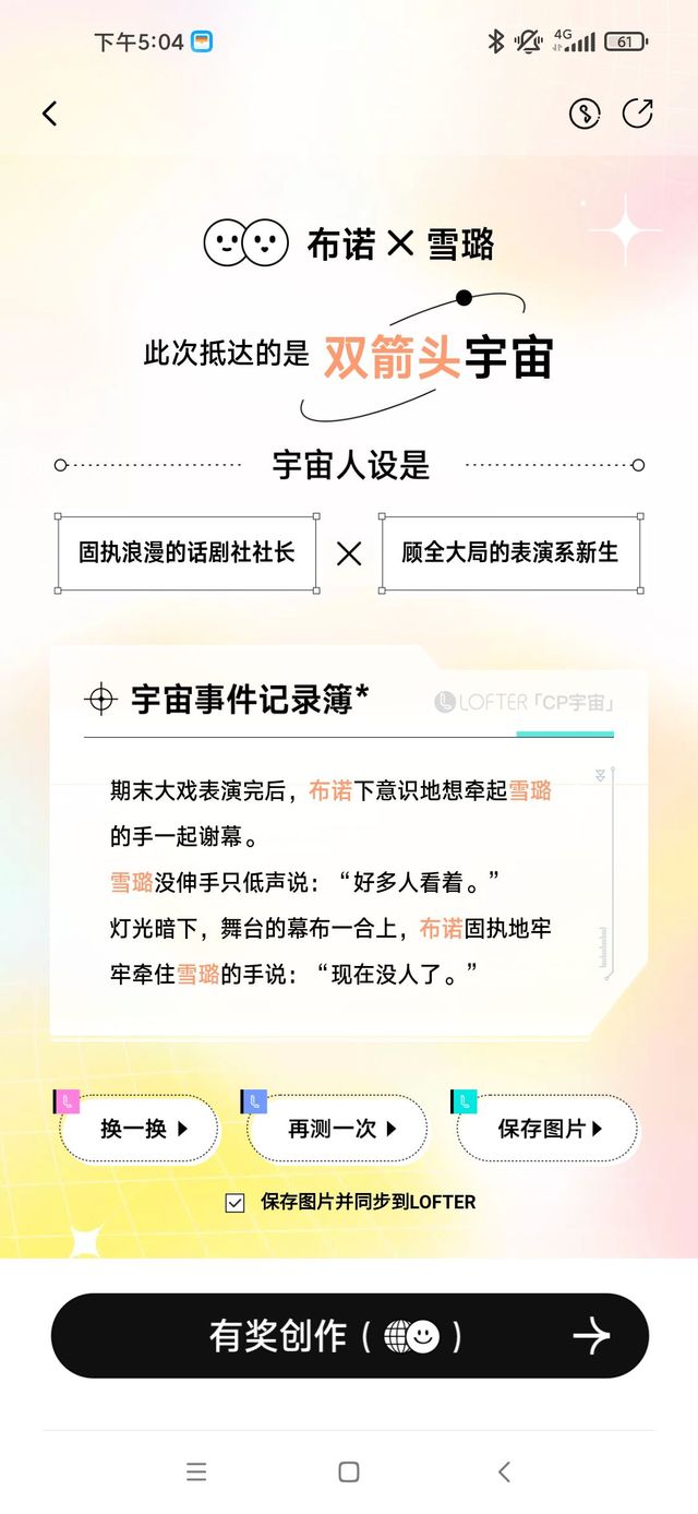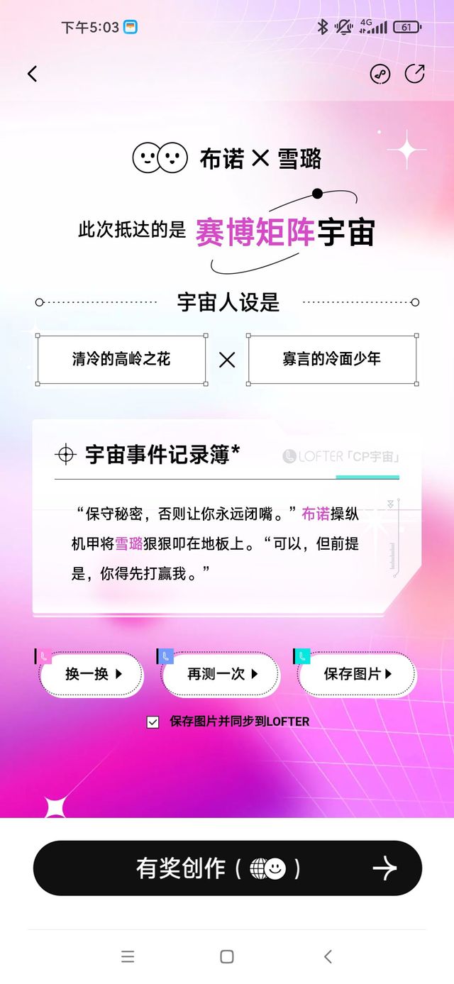 作者今天玩lofter的cp生成,用的布诺和雪璐