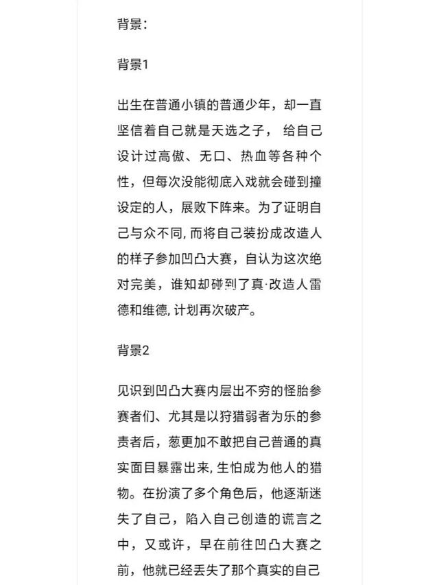 “我唯一的愿望,就是变得不再普通,也可以和大赛前几那样,自由自在、不用伪装、不受约束、可以做真正的自己!难道我的愿望是错的吗?!”