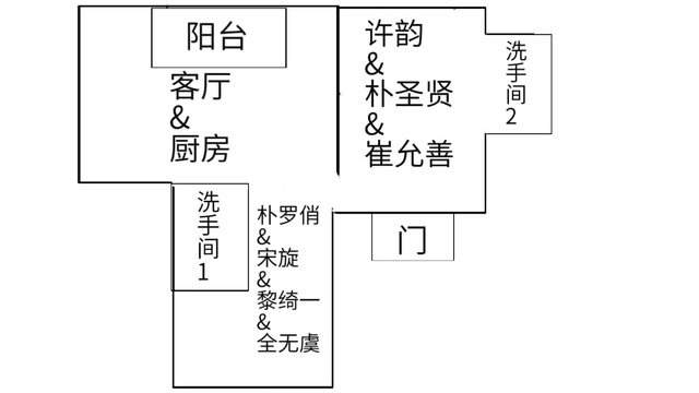 在崔允善、朴圣贤和许韵共同的房间里,摄影机捕捉到了窗户边的小柜子上摆放着的一张很大尺寸的许韵怼脸的照片。