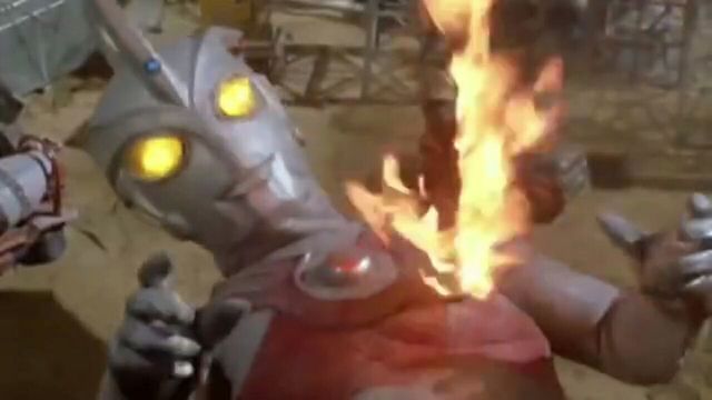 机械艾斯也拿出艾斯之刃迎战,一旁的泽塔看着机械艾斯的战斗。