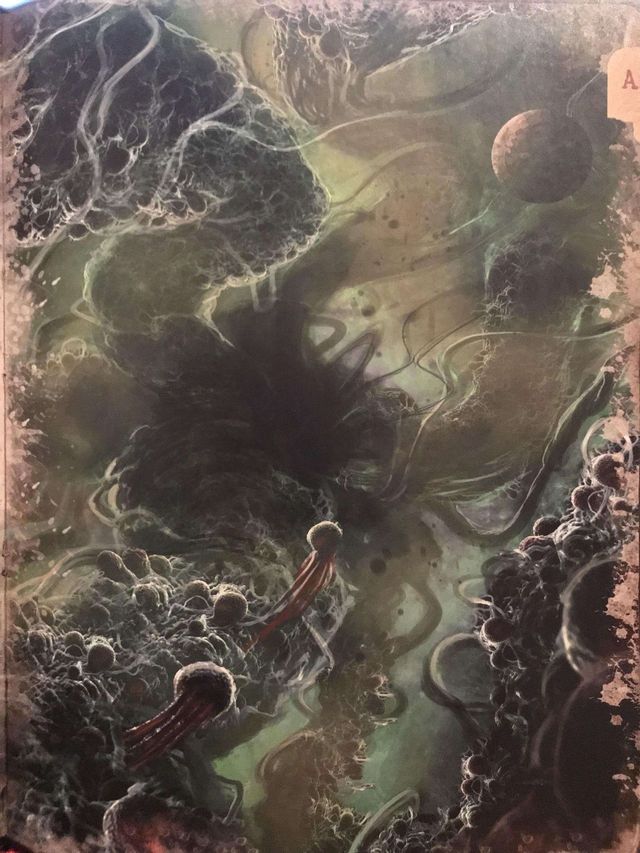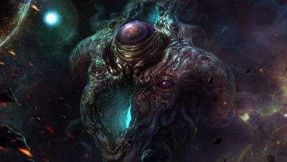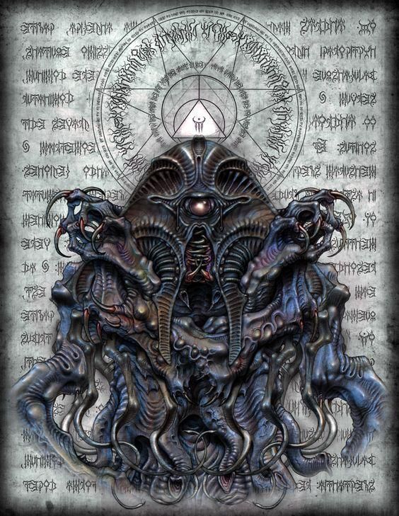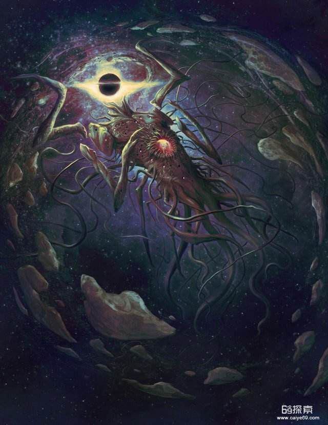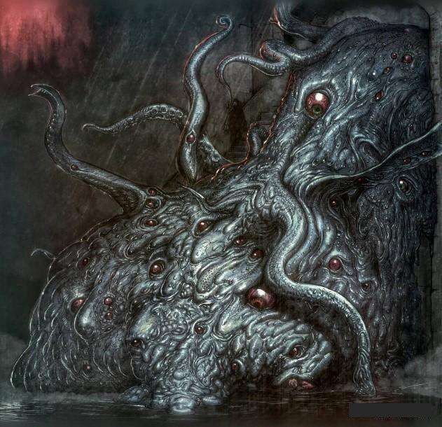 电脑“在他眼前显现出了一系列万花筒般的幻象,然后所有这一切又不时地溶解在一片深不可测的辽阔黑暗深渊里,无数更深的黑色世界与太阳就在这片深渊里旋转。他想起了古老传说中提到的终极混沌——在那混沌的中央蔓生着盲目痴愚之神,万物之主阿撒托斯。他被大群毫无心智也没有固定形状的舞者松散地环绕着,随着由那抓握在无可名状的爪子里的可憎长笛所吹出单调低音而安顿平歇。”