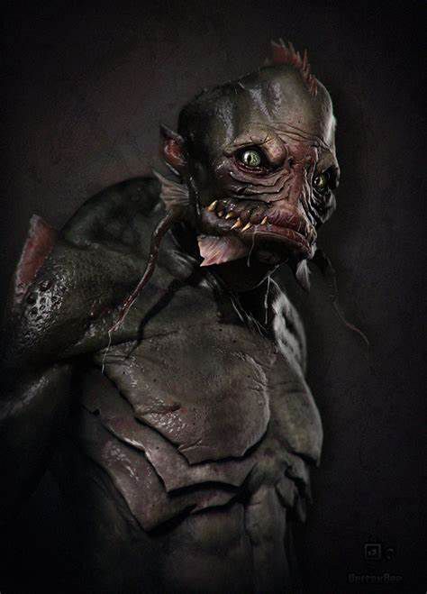 深潜者(Deep One)一般居住于深海,海底都市拉莱耶(R'lyeh)附近,外观为人头鱼身,身体主色为灰绿色,有白色的腹部,有强有力的后肢,四肢指尖有蹼,背部附有坚硬的鳞片,两颊有腮,