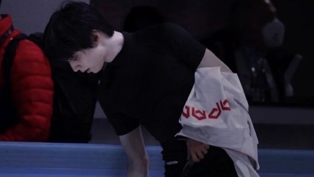 羽生结弦同意,换上了自己平常的黑色训练服,滑到冰的正中央,朝祁奈的方向来了一个类似于索契冬奥会时,他“紧张”的笑。