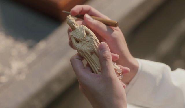 小皇帝手里那些一块木头正雕刻着什么东西