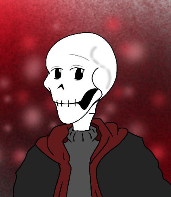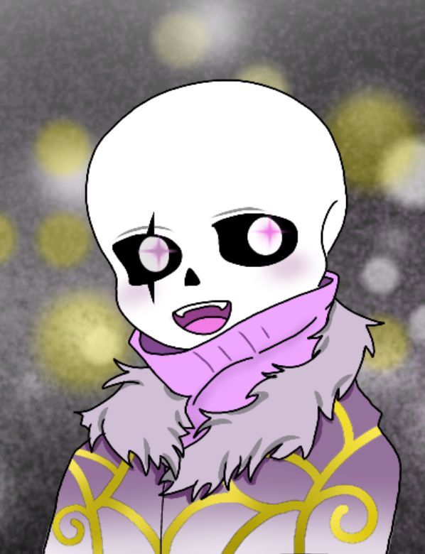 这时,对面走来了另一只骷髅,他看上去比papyrus矮的多,他右眼有一道伤痕,身上穿着一件有着金色花纹到膝盖的紫白色渐变袍子,黑色的裤子和白色的运动鞋,毛毛袖口下戴着一双半指黑色手套。除了头和手指剩下的地方都遮的很严。