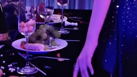 宋时悸轻倚在宴会桌旁,轻摇酒杯,酒杯塔在灯光的照射下显得格外刺眼